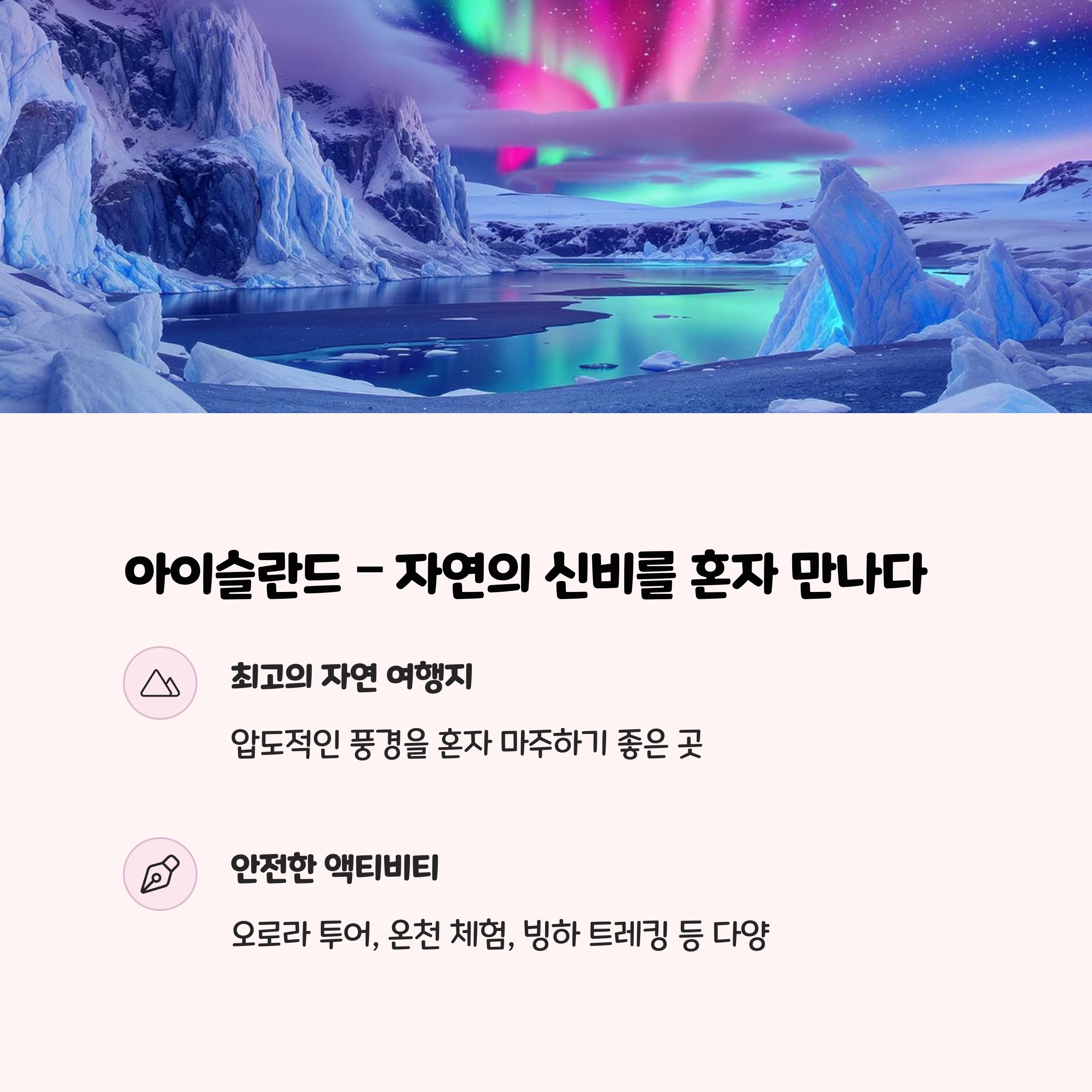오로라 투어, 온천 체험, 빙하 트레킹 등