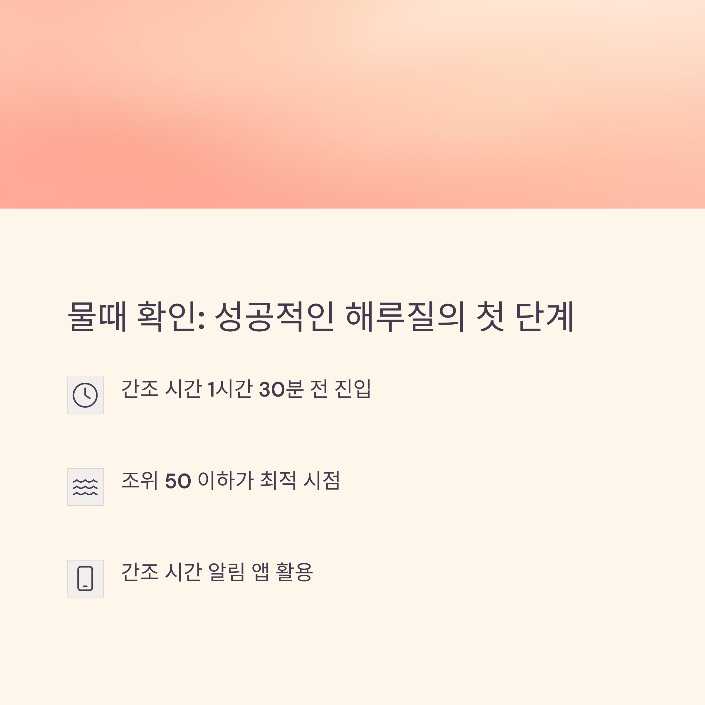 | 물때 앱 또는 해루질 커뮤니티 | 실시간 조위 확인 가능 | 데이터 오류 주의 |