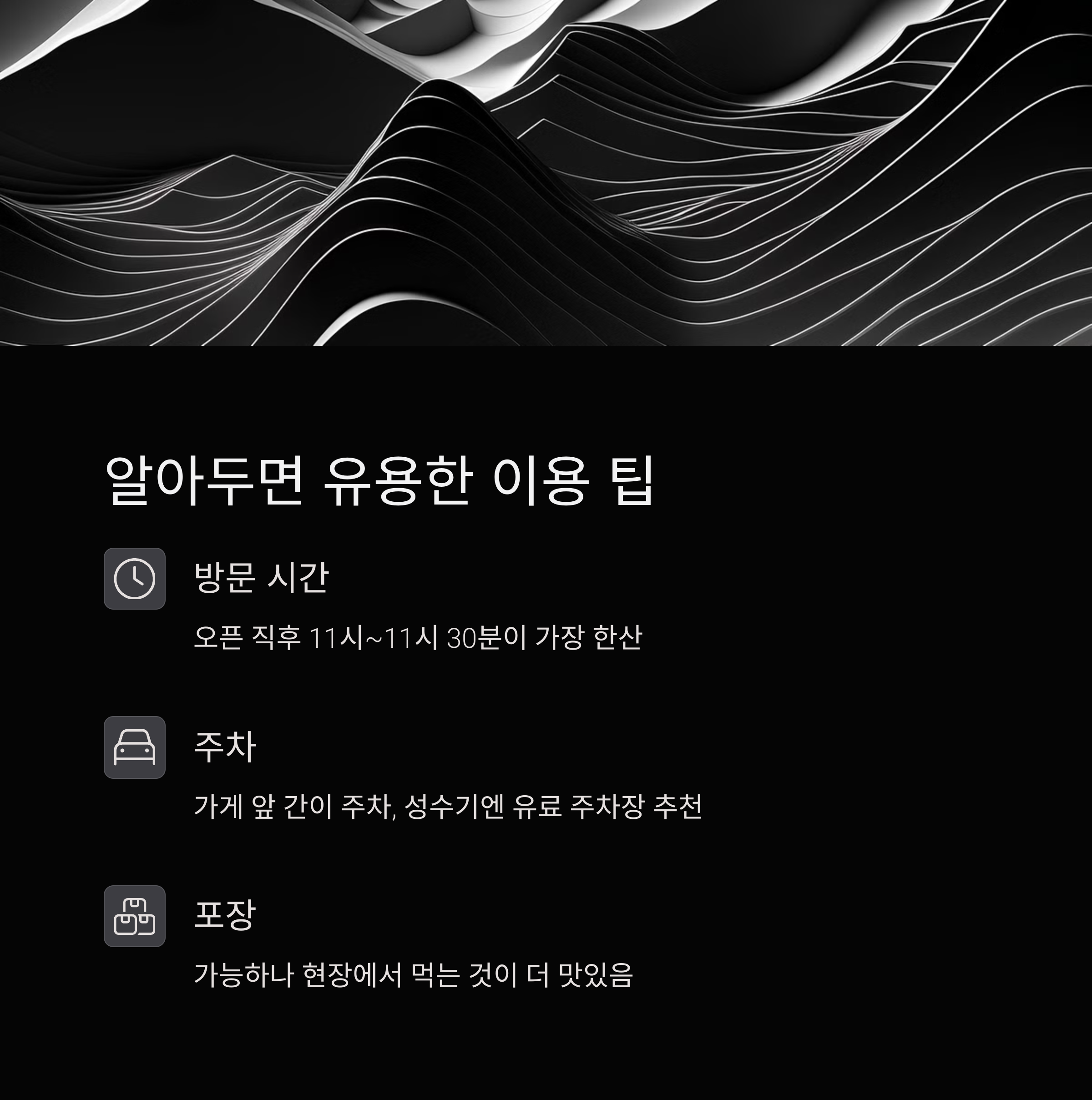 A. 오픈 직후 11시~11시 30분 사이가 가장 한산합니다. - Q. 포장도 되나요?