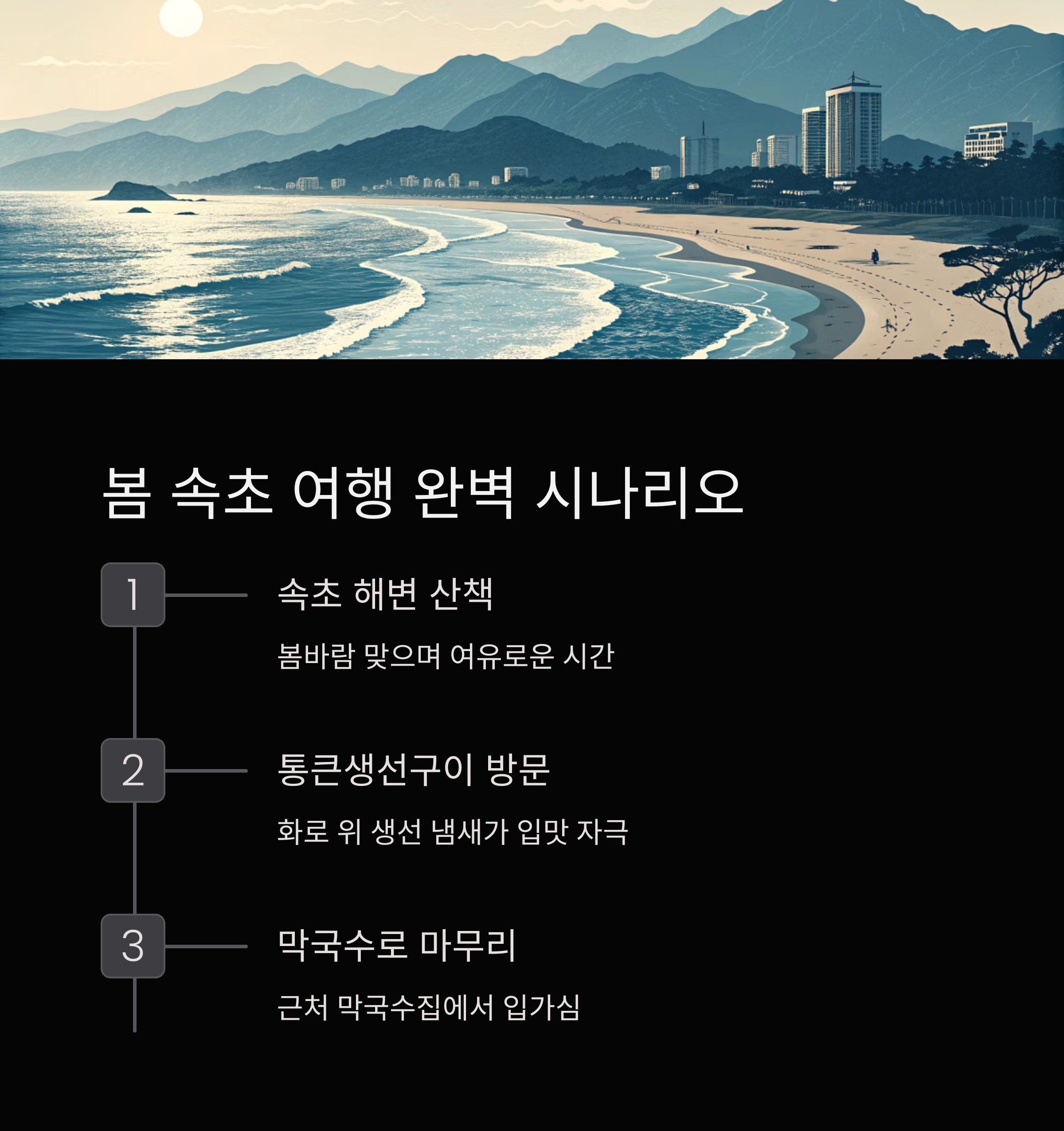 시나리오: 봄바람 따라 속초 드라이브, 그리고 생선구이 한 판