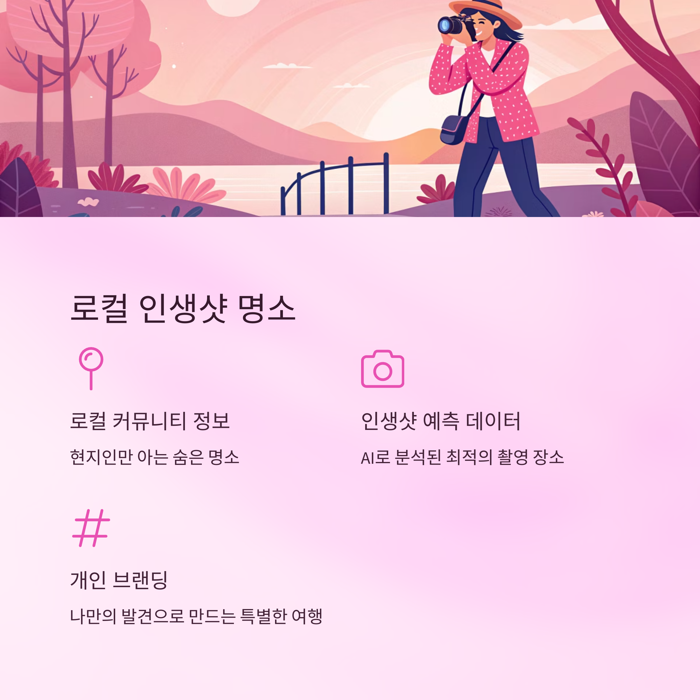 그리고 AI로 분석된 인생샷 예측 위치 데이터 등이 여행 코스의 핵심이 됩니다.