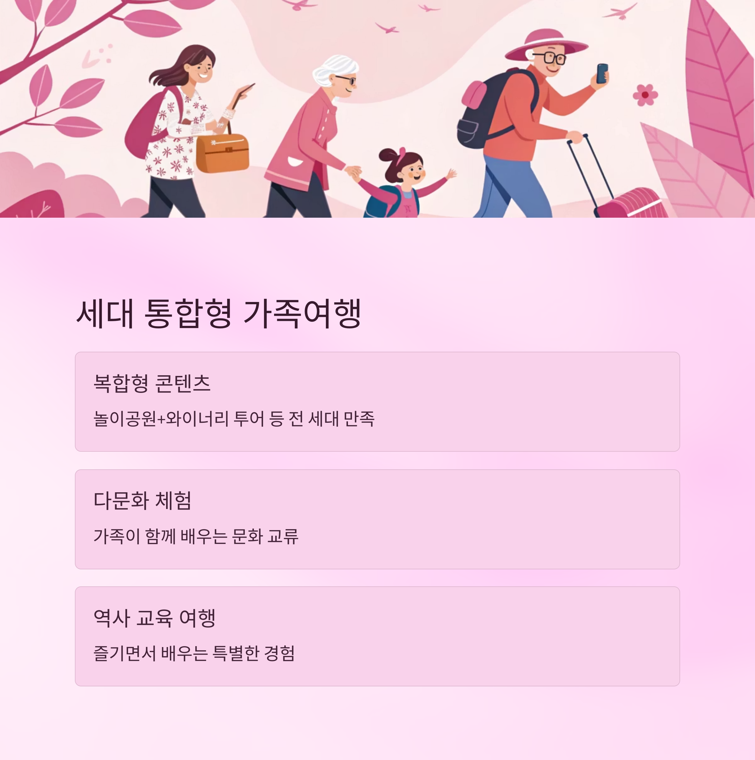 2025년은 전 세대를 고려한 세대 융합형 여행 트렌드가 등장하고 있습니다.