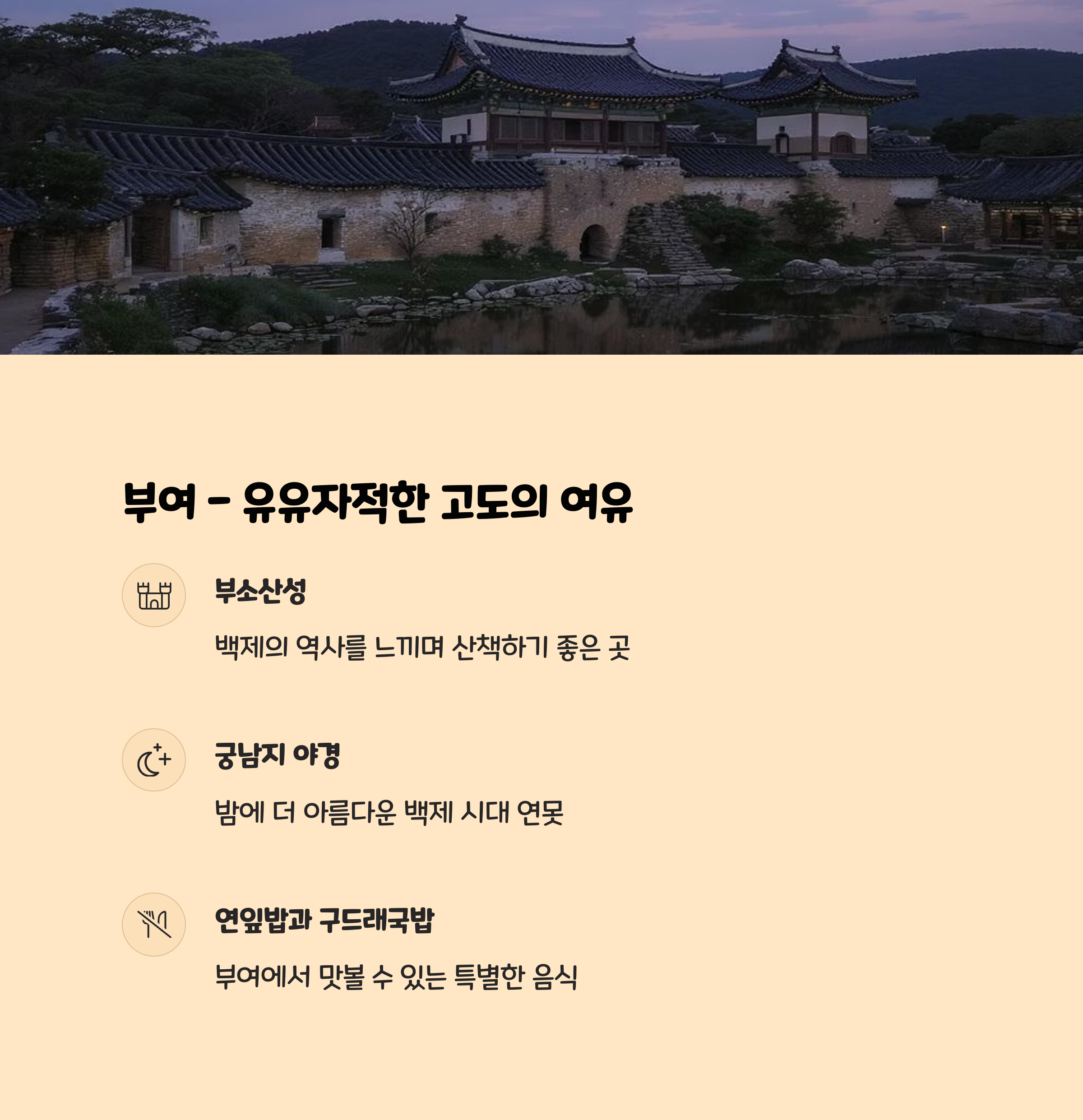 부소산성 산책과 궁남지 야경은 마음을 차분하게 만들어줍니다.