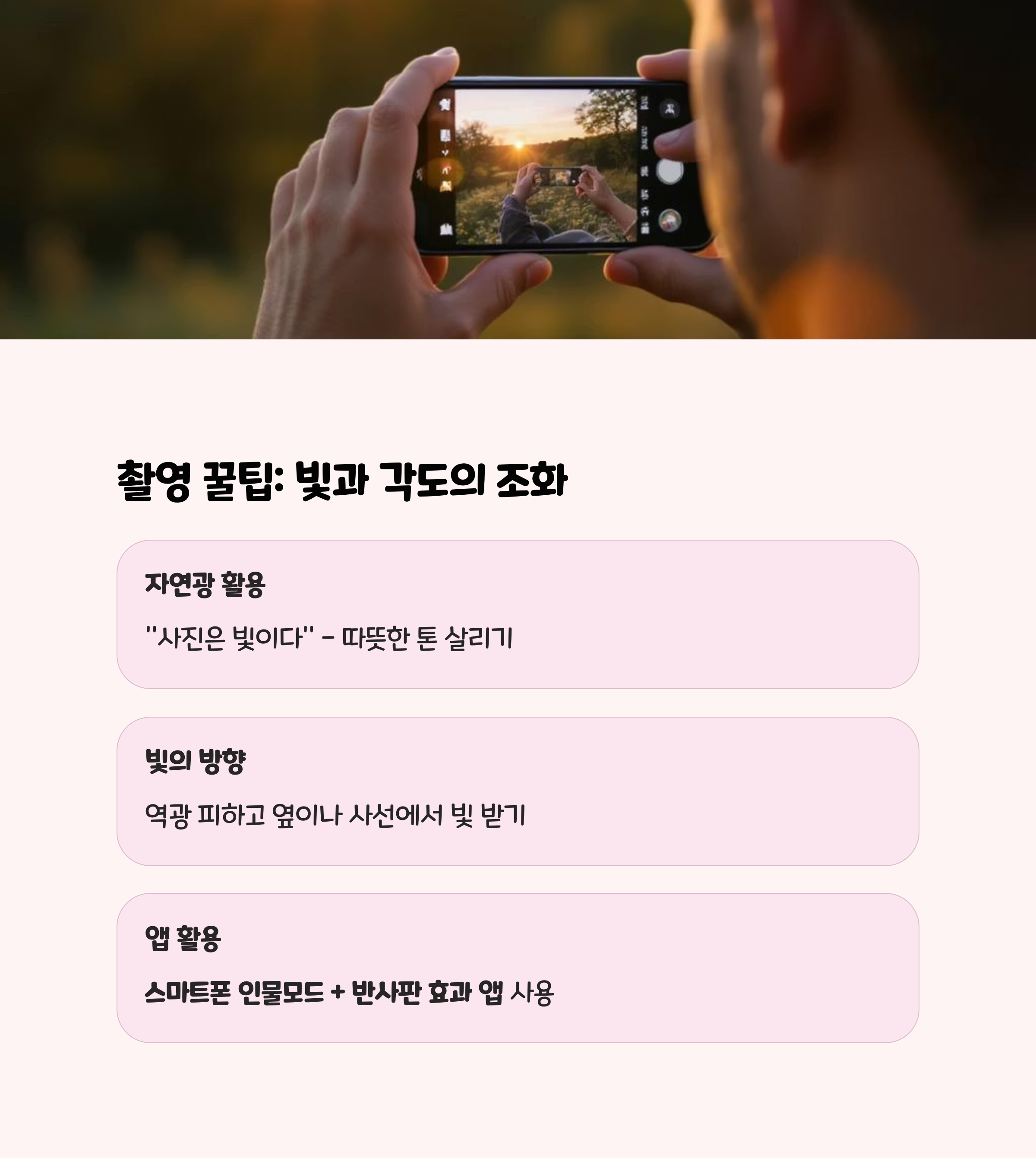 촬영 꿀팁: 빛과 각도, 인물과 배경의 조화