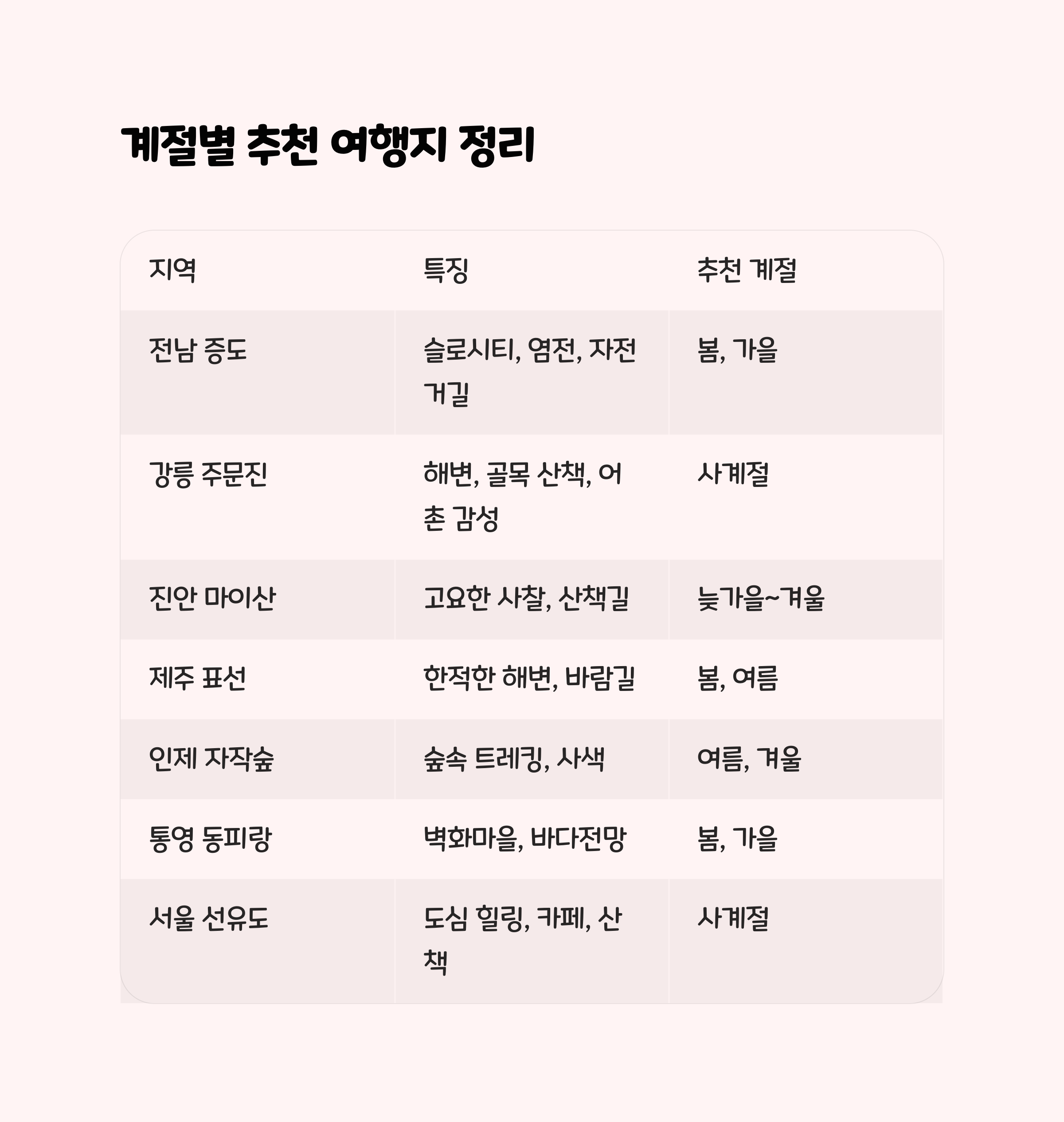 지역 특징 계절 추천