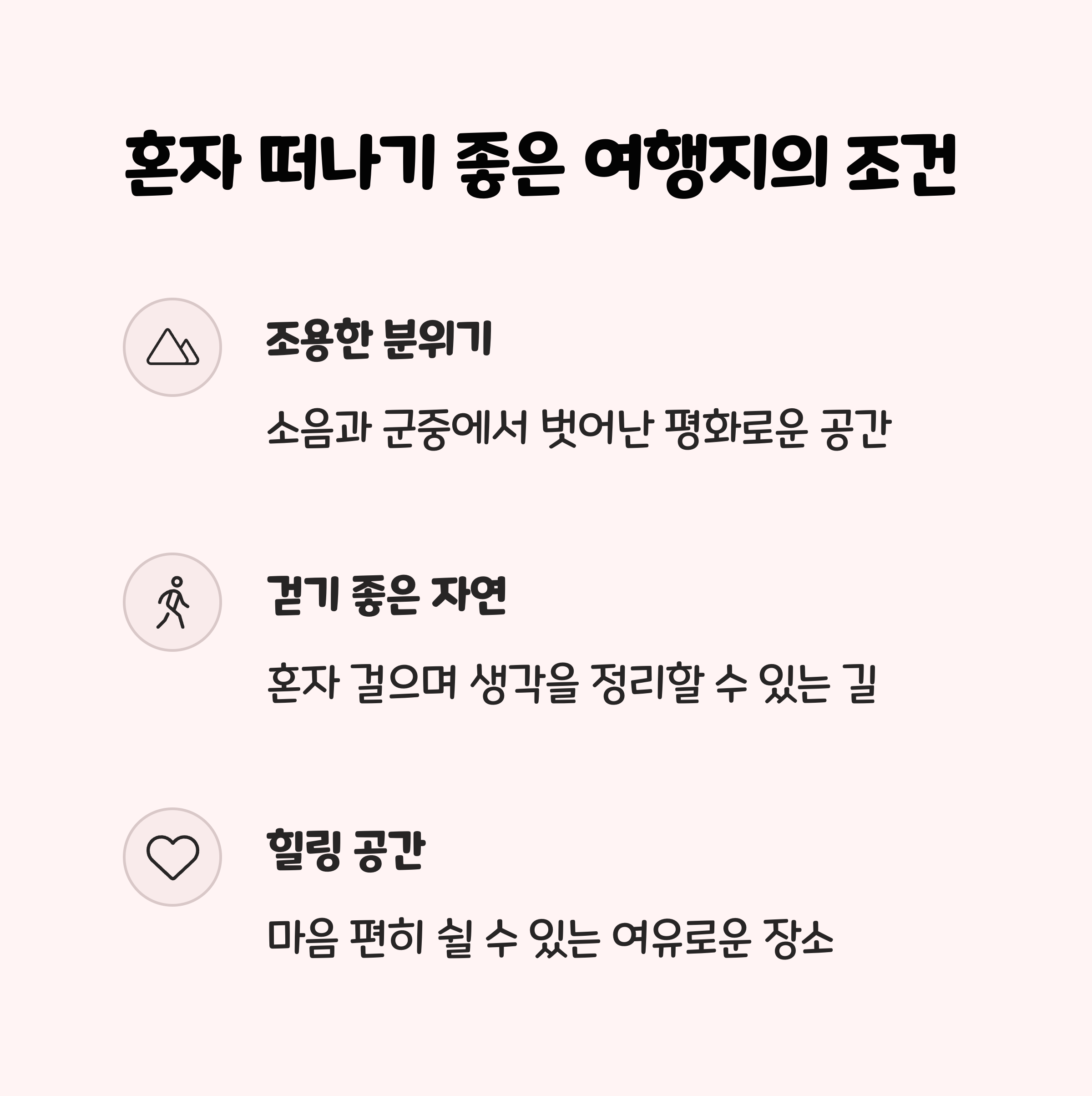 이번 글에서는 혼자 떠나도 불편함 없고, 오히려 더 좋을 수 있는